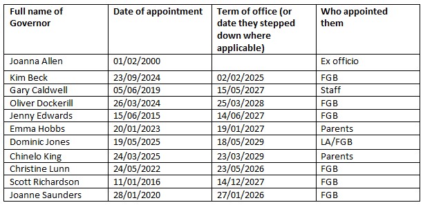 - Terms of reference of the governing body – more information can be found on this website about the different categories, roles and committees that can be involved with being a governor. In brief, the different categories are: